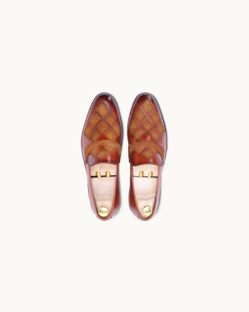 Royal Tan Slip-On Loafer ek premium men’s shoe hai jo rich tan leather finish aur elegant diamond stitched design ke saath classy look deta hai. Iska slip-on style daily use ko easy banata hai, jabke soft inner lining aur strong sole poora din comfort aur durability ensure karta hai. Office wear, formal events aur smart casual outfits ke liye yeh loafer ek perfect choice hai jo aapke style ko next level par le jata hai.