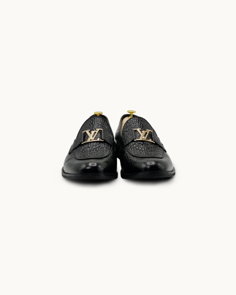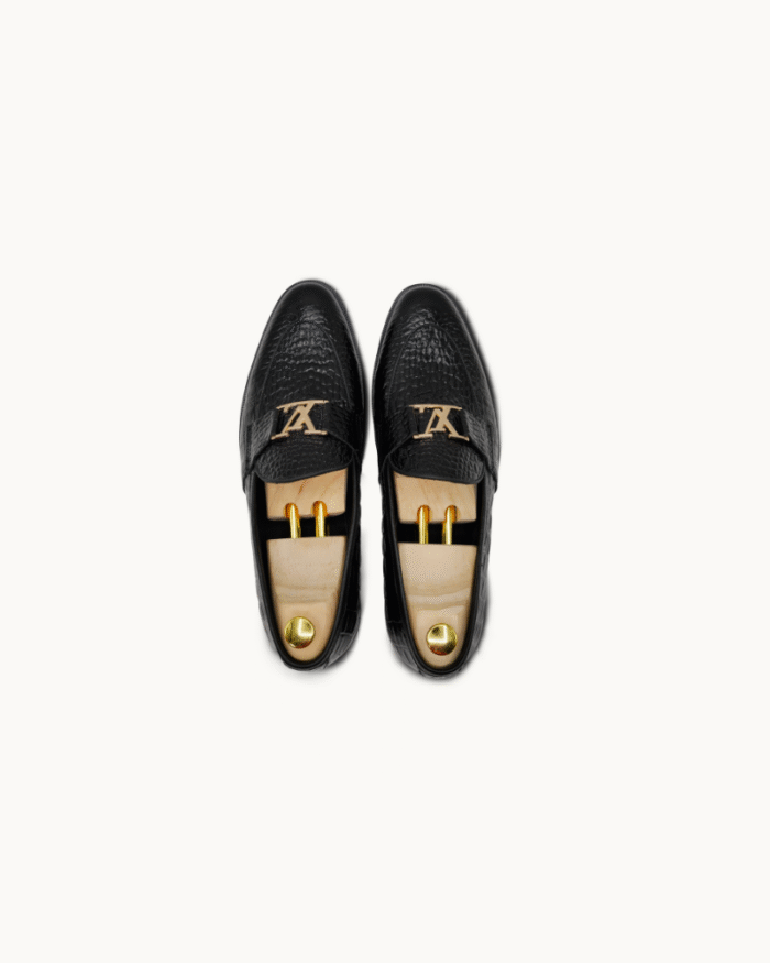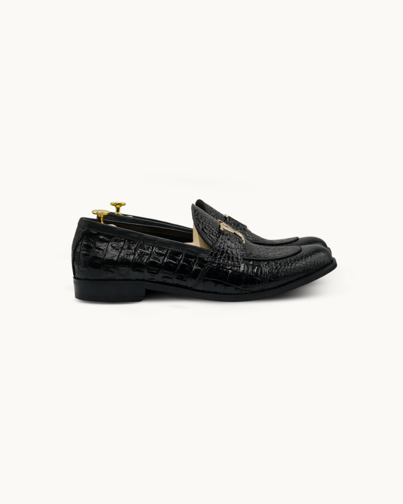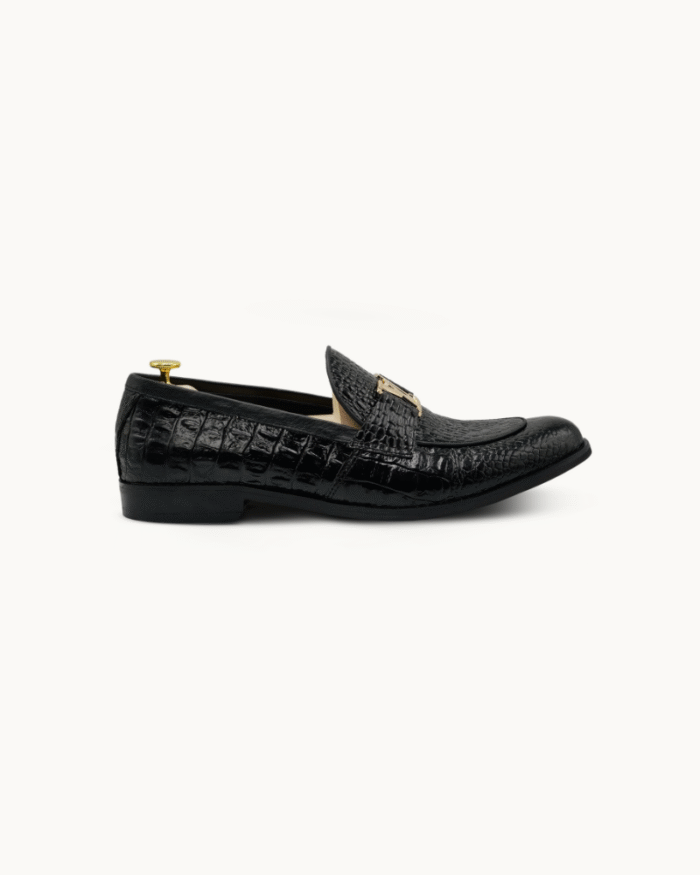 The glossy black croc texture delivers a bold, sophisticated look that pairs perfectly with both formal and high-fashion outfits. Featuring a comfortable insole, durable sole, and meticulous detailing, they provide lasting comfort without compromising style.